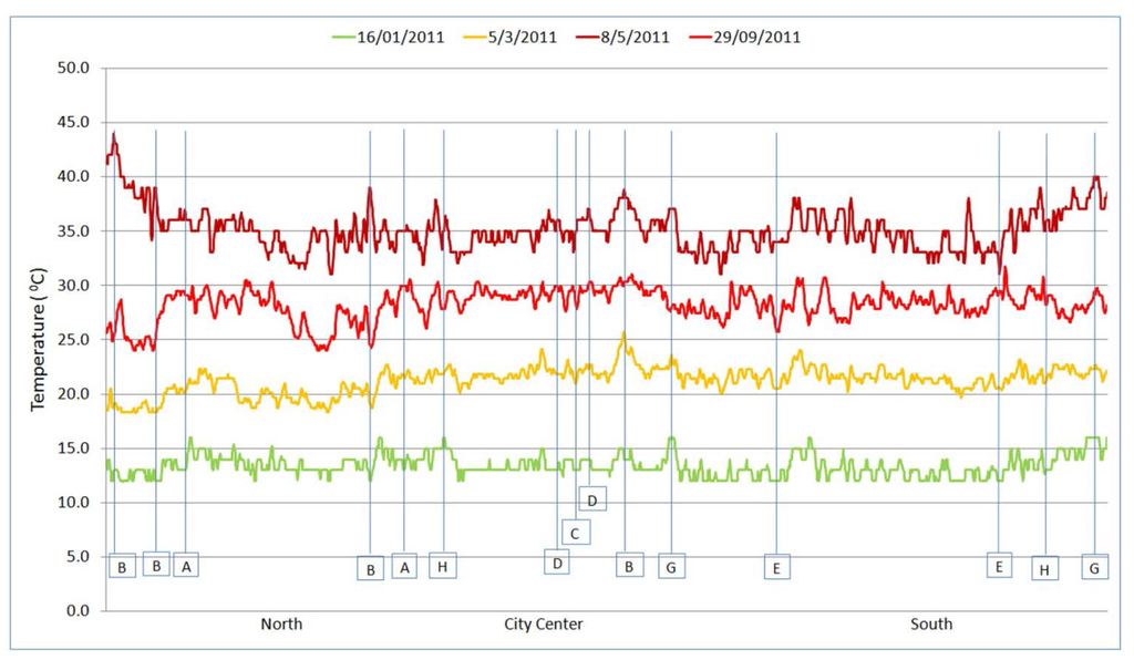 - Valsson, S.; Bharat, A. Urban Heat Island: Cause for Microclimate Variations. Architecture-Time Space & People 2009, 21–25. [Google Scholar]