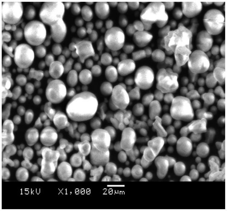 Fly ash is a heterogeneous material. SiO2, Al2O3, Fe2O3 and occasionally CaO are the main chemical components present in fly ashes, as shown in Table 1 [27]. Since the particles solidify rapidly while suspended in the exhaust gases, fly ash particles are generally irregular in shape and range in size from 0.5 μm to 100 μm. Therefore, SiO2 particles were used in the experiments. The microscopic morphology of the particles is obtained by Scanning Electron Microscopy (SEM). The microscopic morphology of the particles is regular spheres, as shown in Figure 3.