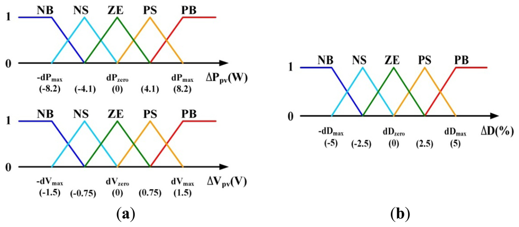 Designing the UOD of input MFs: In this context, voltage variation ΔVpv and power variation ΔPpv are chosen to be input variables. The UOD of ΔVpv and ΔPpv can be determined by the following procedures: