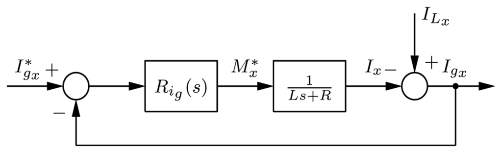 According to Figure 2, the grid current can be written as ig = iL − i. The grid current can therefore be modified by controlling the DSTATCOM current, as the simplified scheme in Figure 5 shows. As the control objective is to maintain the grid current balanced, the reference value for the second harmonic component of the grid current is zero ( ). The output of the controller, Rig (s), is the variable, , which is obtained with the proposed control law: