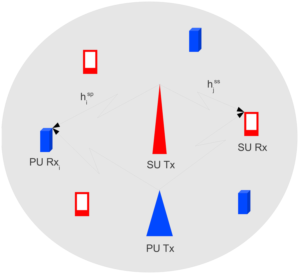 We assume that the fading channel between the SU transmitter and ith PU receiver can be described by Rayleigh distribution with fading gain denoted as . The probability density function (pdf) of the channel power gain is exponentially distributed and can be written as,