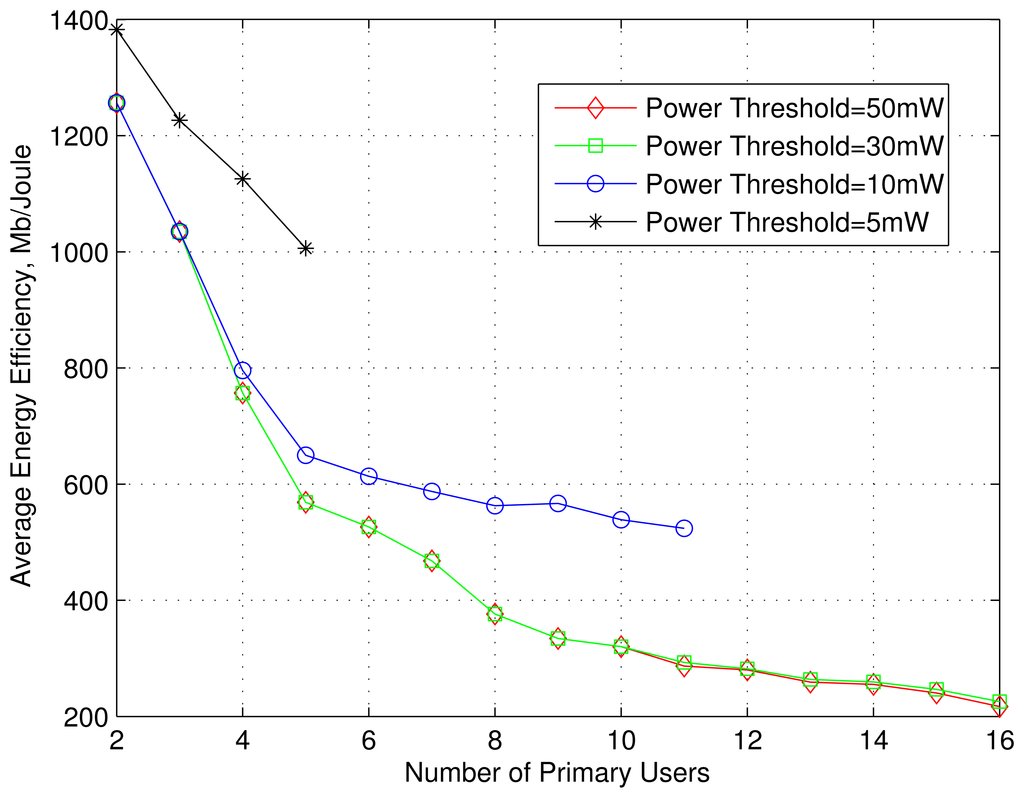 - Li, L.; Zhou, X.; Xu, H.; Li, G.Y.; Wang, D.; Soong, A.C.K. Energy-efficient transmission for protection of incumbent users. IEEE Trans. Broadcast. 2011, 57, 718–720. [Google Scholar]