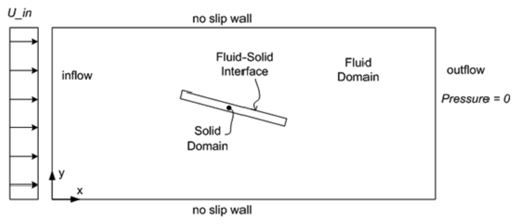 For most flutter-related applications (wind bridge engineering, airfoil designs, etc.), the thin plate theory is too simplistic to be able to solve airflow-induced oscillation problems associated with complicated structural contours. However, progress in computational fluid dynamics and computer technologies has allowed effective flutter derivative identification. Figure 5 illustrates the numerical problem domains associated with 2D flutter: (i) the fluid domain occupied by incompressible flows; (ii) the structural domain associated with the elastic belt/plate; and (iii) the interface region, including inlet and outlet.