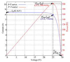 Solar cells are arranged in the PVT evaporator with a series-parallel configuration for electricity generation applications. PV devices naturally exhibit nonlinear I − V and P − V characteristics that vary with radiant intensity and cell temperature. The I − V output characteristic of the PVT evaporator with solar cells in NP parallel and NS series is given by: