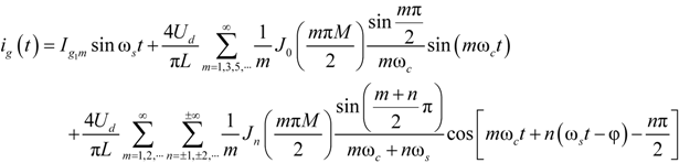 is the fundamental peak value of the grid current. Thus, the grid current in the unipolar modulation mode can be written as: