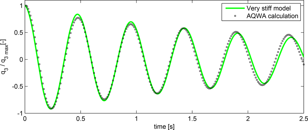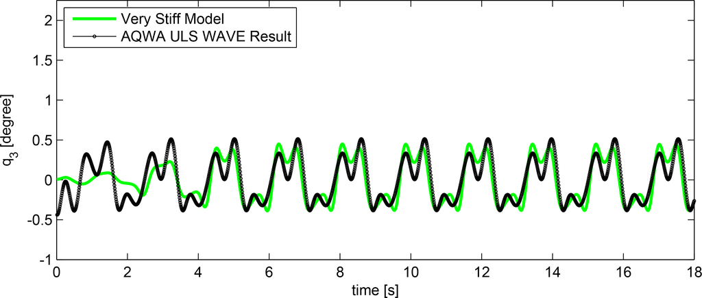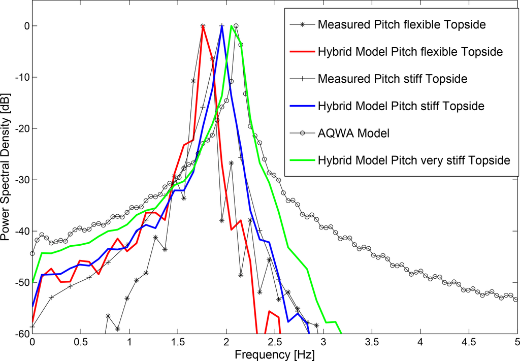 Figure 5 shows the time series comparison between the rigid body response predicted by ANSYS AQWA and the hybrid model. The natural frequency of the rigid body motion predicted by the hybrid model is 2.05 Hz, where ANSYS AQWA predicts 2.10 Hz.
