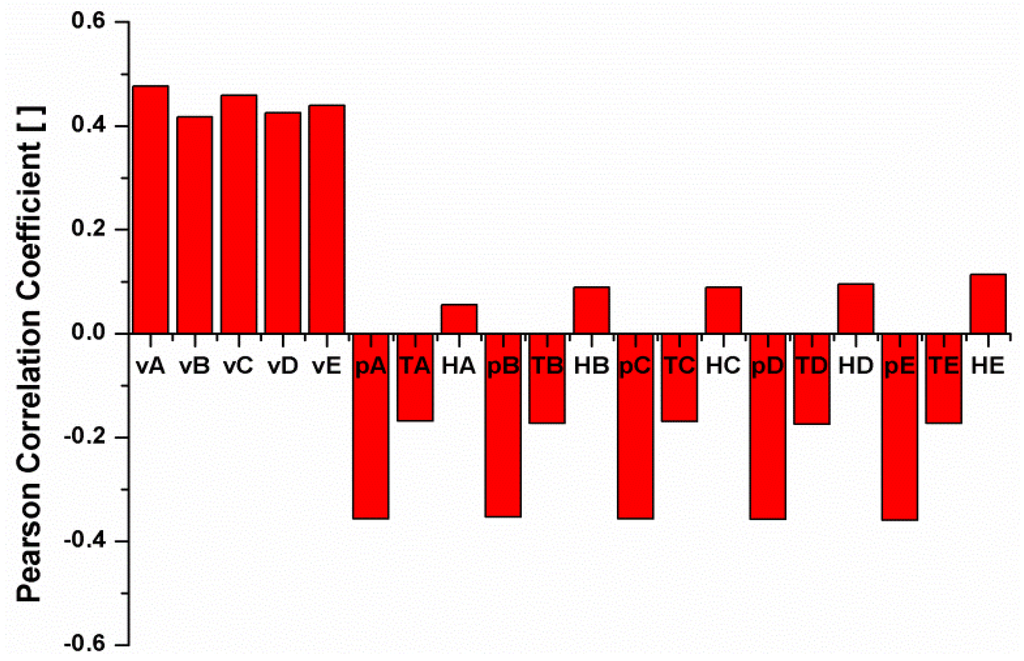 | Site Speed vA, vB, vC, vD, vE | Pressure pA, pB, pC, pD, pE | Temperature TA, TB, TC, TD, TE | Humidity HA, HB, HC, HD, HE | Hourly average power Pm | |