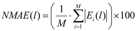 The accuracy of the predictions was evaluated considering the normalized mean absolute percentage error. Therefore the statistical metrics were considered as follows: