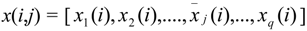 xi = [v(A,i);… v(E,i) p(A,i)… p(E,i); T(A,i)… T(E,i); H(A,i)…H(E,i); Pm(i)]