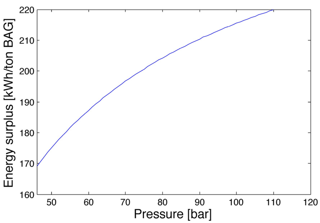 In the present study, the evaluation of energy losses in processes like pressure reductions and temperature control with tempering water has also been performed because of its importance. The pressure reductions were considered as isenthalpic, but their energy is not conserved and leads to considerable losses. Table 2 shows energy losses.