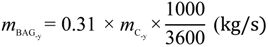 mBAG= 0.31× mc (kg/s)