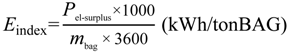 where R2 = 0.756 which, according to the ISO 500001:2011 [], is a sufficient indicator to establish the relationship. The study based on the normative outlined that 71.5% of the plant electrical energy demand was not related to the production []. The study showed that for the alcohol plant there was no relationship between milling rate and electrical consumption. For this reason, the electrical consumption of the PAC was a constant equal to 50,360 kWh/day. Total electrical energy consumption of the plant is the sum of the mill rate-depending part and the constant one (PAC). The electrical power requirement (Pel) is then: