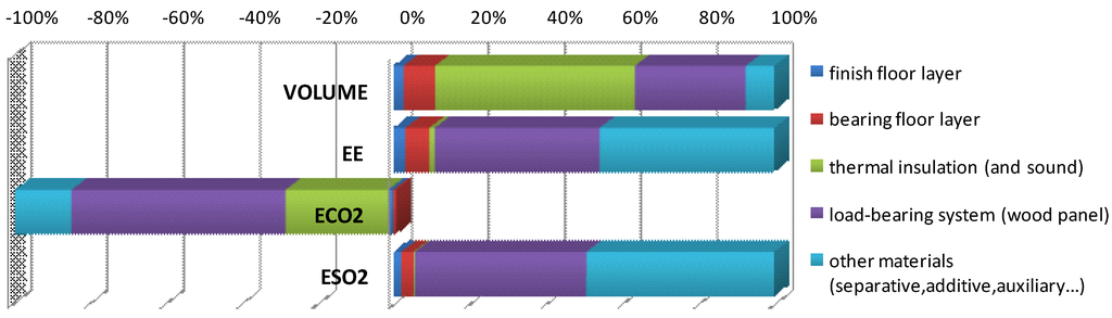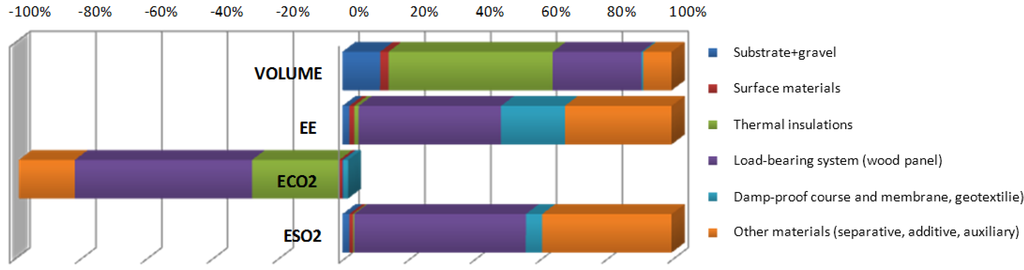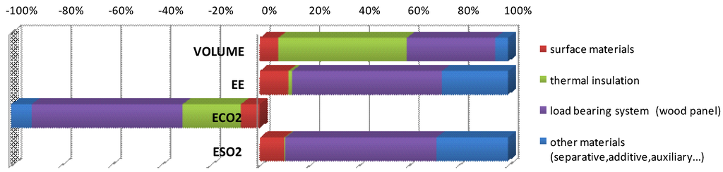 On one hand, nearly-zero energy buildings ensure the reduction of operational energy; on the other hand, additional energy is often required for the production of increased amounts of materials and other components, which results in a greater proportion of EE and emissions in the overall lifecycle [15]. High-energy-intensity components are often subject to a wide range of replacements [16]. A comparative study of steel beams at the airport outside Oslo demonstrated that the total energy consumed for manufacturing the beams was two to three times higher, and the use of fossil fuels six to twelve times higher than for manufacturing of glulam beams [17]. The substitution of some building materials showed that EE can be decreased by approximately 17% [18].