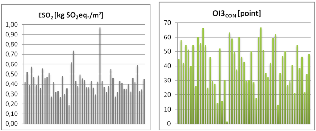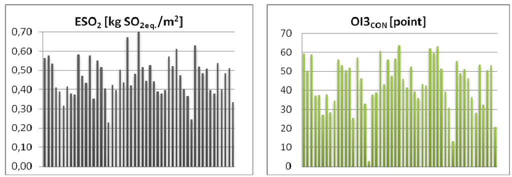| ΔOI3 | environmental indicator describing the impact of a building material in a given construction layer |