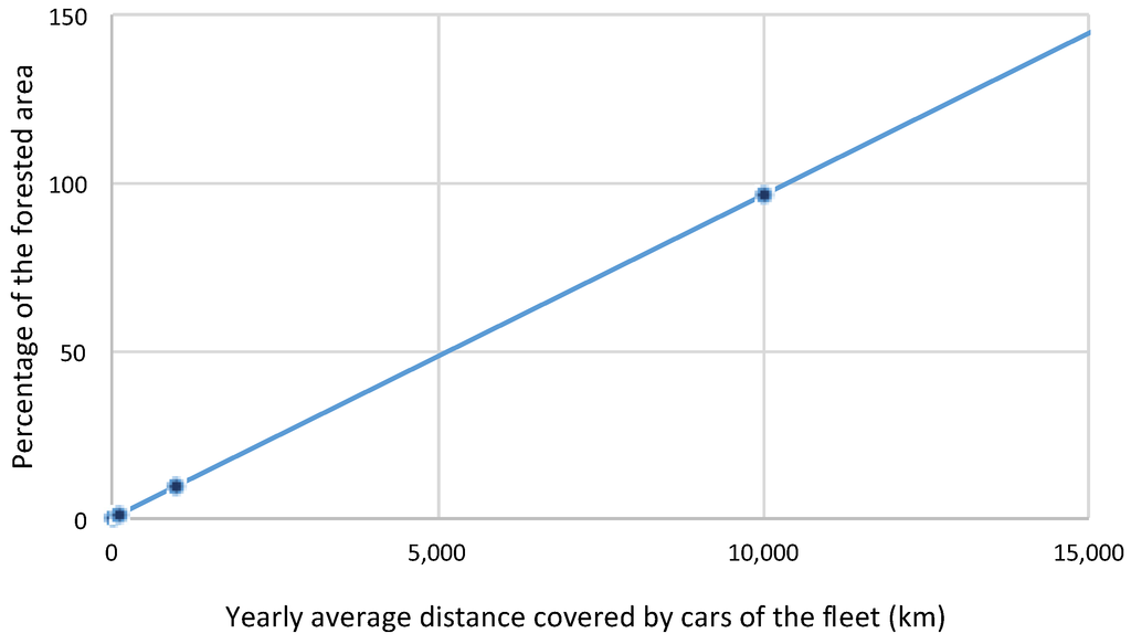 Chi and Stone [43], referring to the Houghton County (Michigan), evaluated the ecological footprint of vehicle travel in future years, by estimating the quantity of land required for constructing highways and area of forest needed to sequester greenhouse gas emissions. They concluded that the technological improvements (turning into higher energy efficiency) are constrained by the correspondent increase in yearly kilometres covered by vehicles.