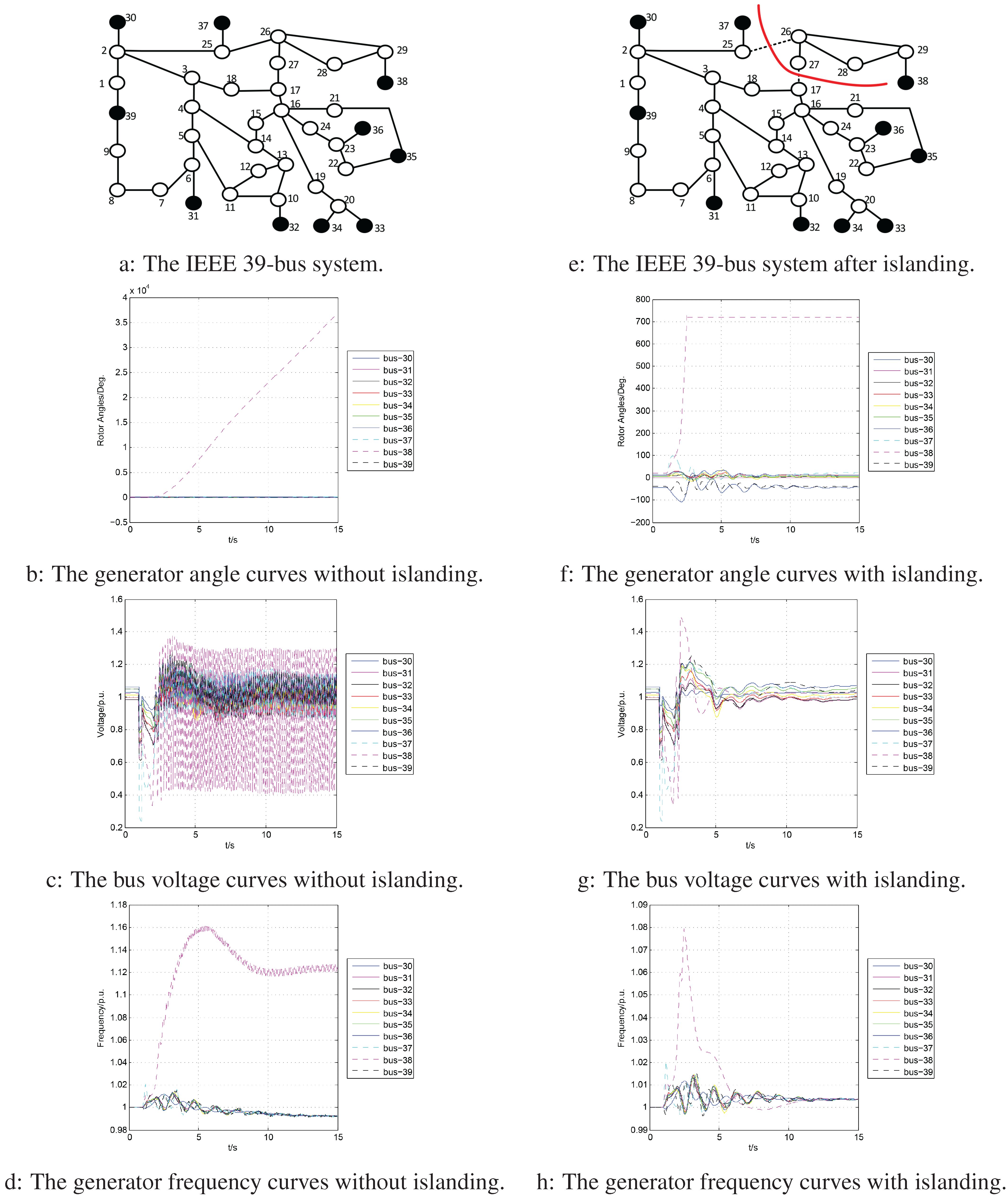 Comparisons with and without the islanding on the IEEE 39-bus system.