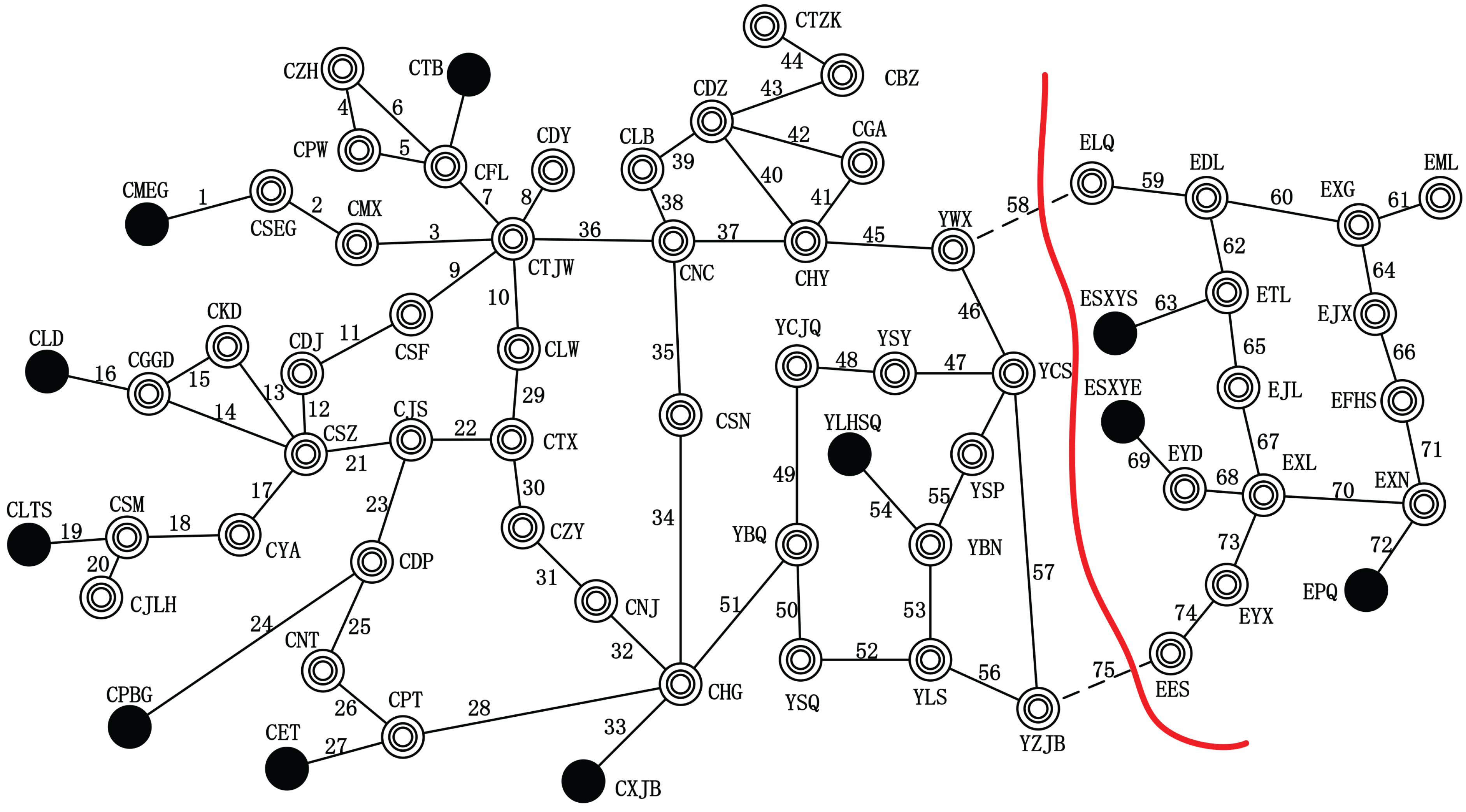 | 27 MW | 58 (YWX-ELQ), 75 (YZJB-EES) | CTB (9 MW), CMEG (7 MW), CLTS (11 MW) | EXG (15 MW), ELQ (3 MW), EML (9 MW) |