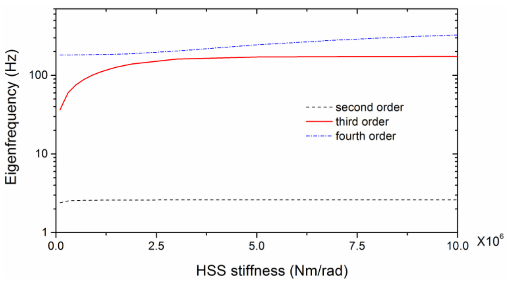 Relationship of the eigenfrequencies with HSS stiffness.