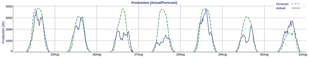 For the determination of optimized schedules to achieve economic savings taking into account load shifting and variable energy tariffs, forecasts of both the local energy generation and consumption are essential. In this work, the forecasts are generated at midnight for the next 24 h with a granularity of 15-min intervals.