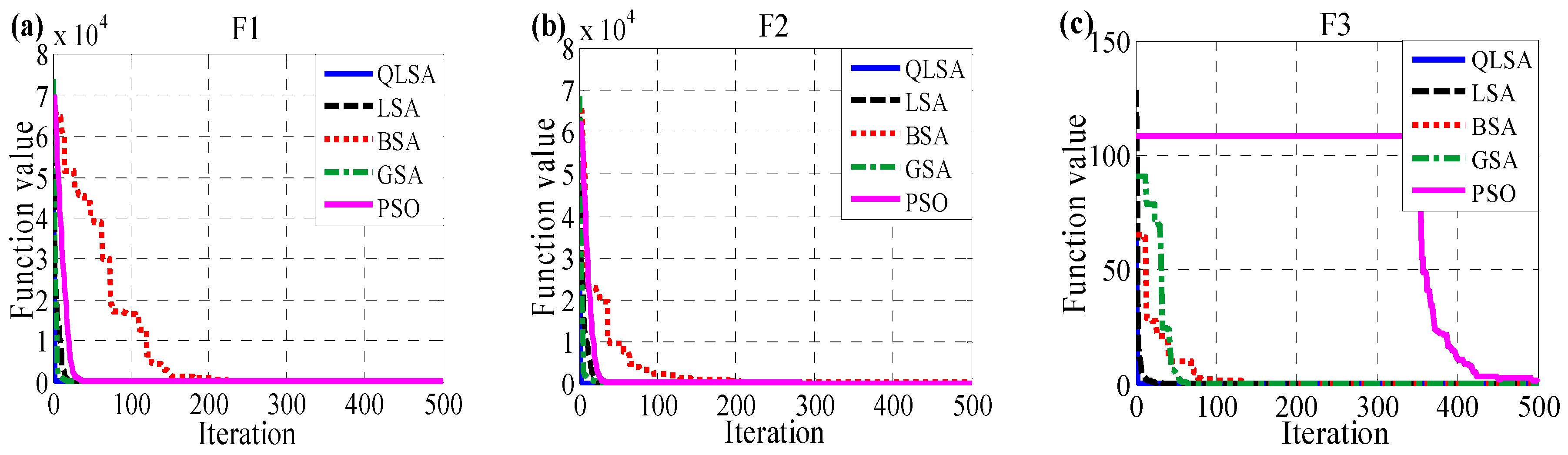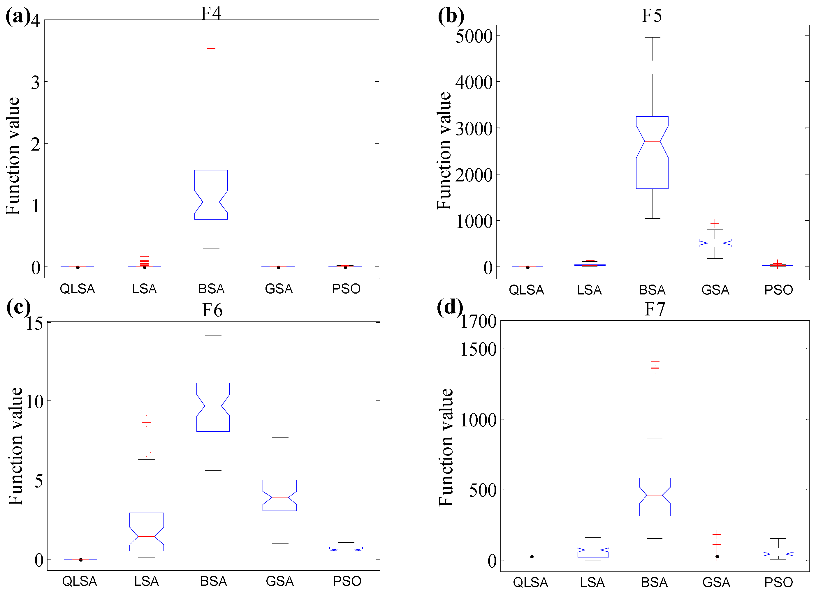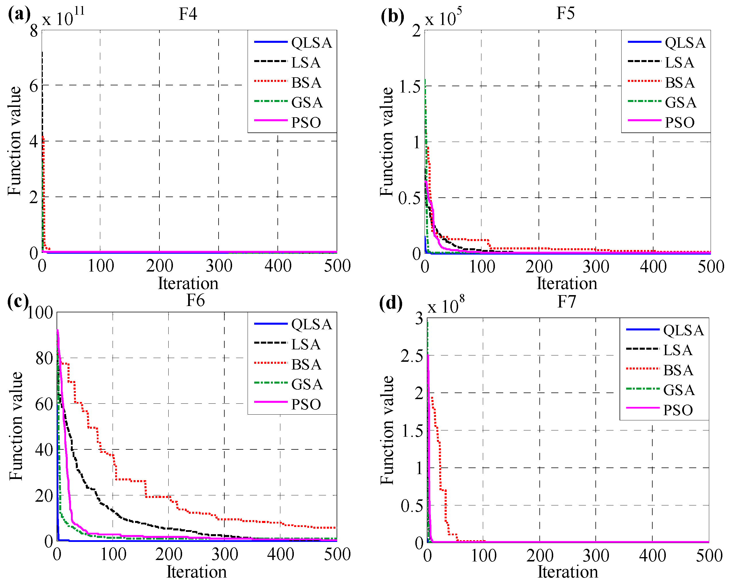 QLSA has several distinctive properties when compared to the original LSA. First, QLSA explores new positions using an exponential distribution obtained through the global convergence between step leaders; second, QLSA calculates the mean best position to enhance the original LSA; moreover, each step leader in QLSA cannot approach the global best position without regarding other step leaders. The distance between step leaders and