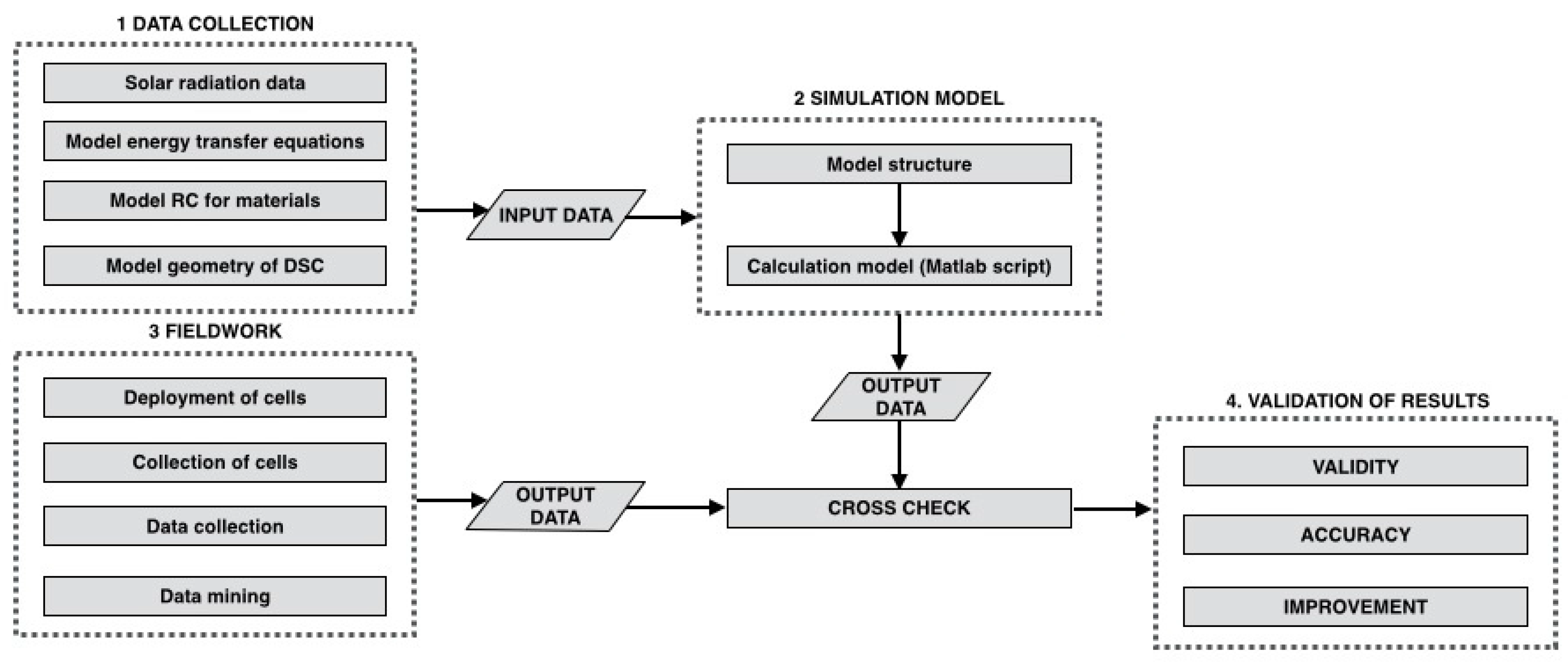 - Accuracy of the method. Comparing on-site measured and simulated data, the accuracy of the method can be checked in terms of two main variables. Shape of the data curve, that is, if the model follows the pattern of the data; accuracy of numeric values, that is, if the output from the simulation routine matches those ones from the measurements. If that is not possible, the cause of the error should be found and explained, always being within an acceptable error margin.
