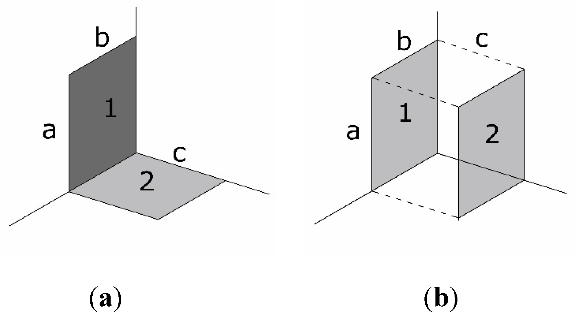 - Energy transfer equations. The fundamentals of the calculation model are based on the theory of configuration factors, in which the authors have made some contributions related with circular and spherical surfaces [18,19] and other curved surfaces [20]. Moreover, a wide database regarding these factors can be found at [21]; the authors have selected, from this source, the most relevant shapes in connection to the present case-study: View factors for rectangular surfaces [22,23] both parallel and perpendicular [24]. These factors allow for the calculation of the radiative transfer between different shapes [25], taking into account their sole geometric characteristics, that is, their shape and their relative position in the space [26]. In this case, canyon will be modeled as parallelepiped volumes composed of rectangular surfaces. In order to calculate the energy interchange between an emitting surface and the receiving planes, the simulation program will discretize the latter surfaces in unitary elements. Receiving planes will be discretized in element of 0.1 × 0.1 meters and a mesh grid is built for the calculation, which is done point by point after the division.
