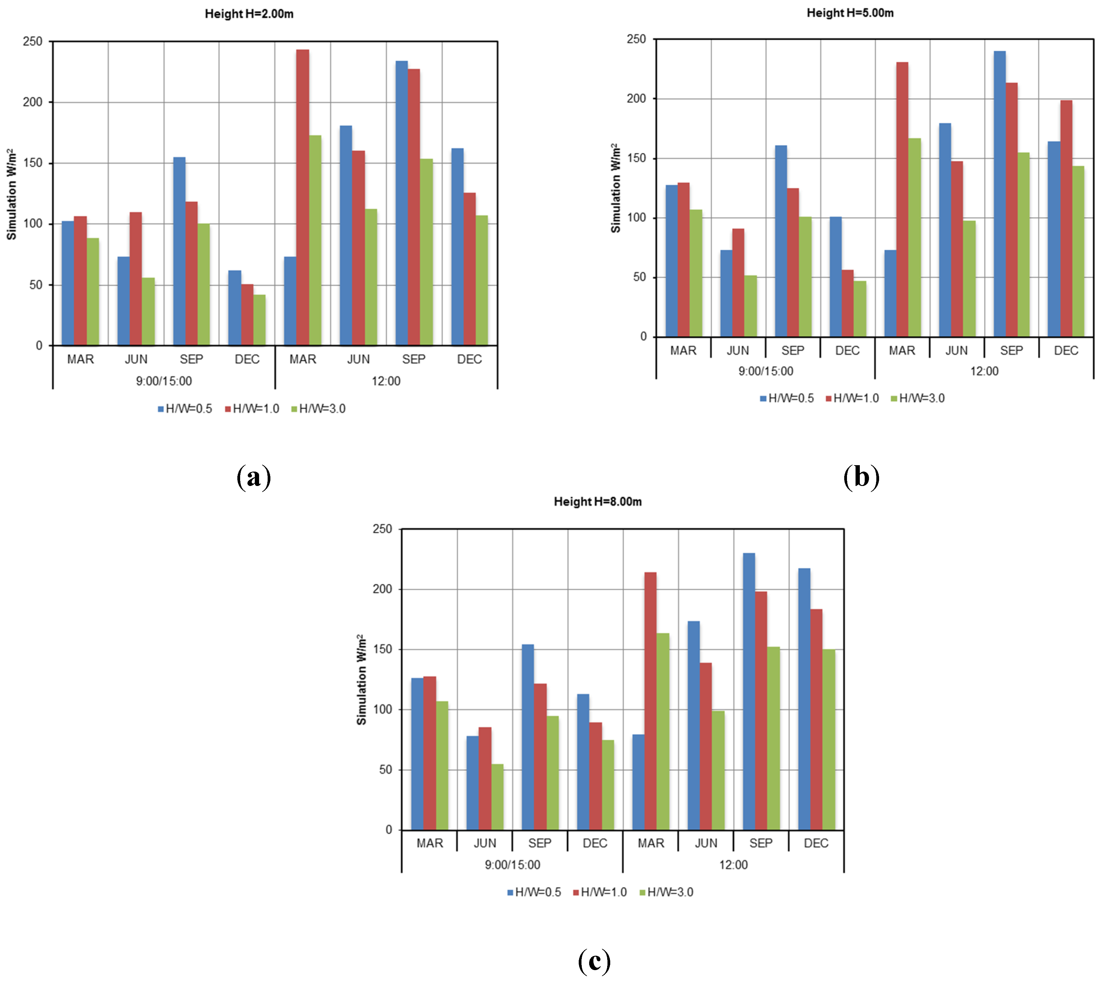 - Herrmann, J.; Matzarakis, A. Mean radiant temperature in idealised urban canyons—Examples from Freiburg, Germany. Int. J. Biometeorol. 2012, 56, 199–203. [Google Scholar] [CrossRef] [PubMed]