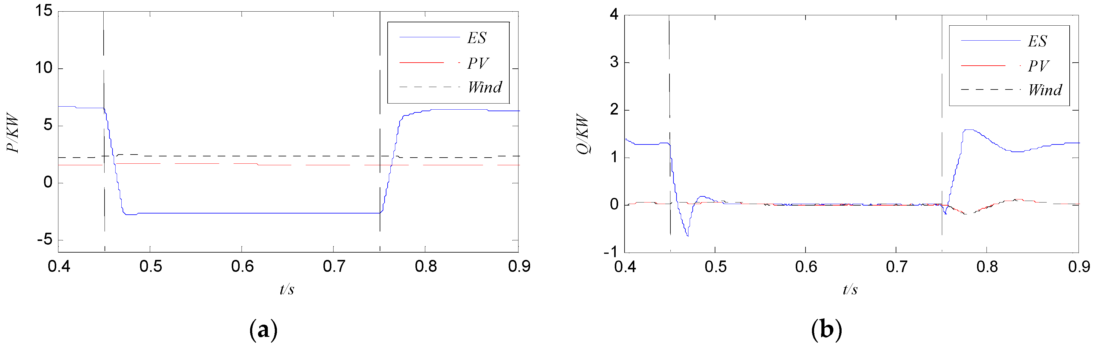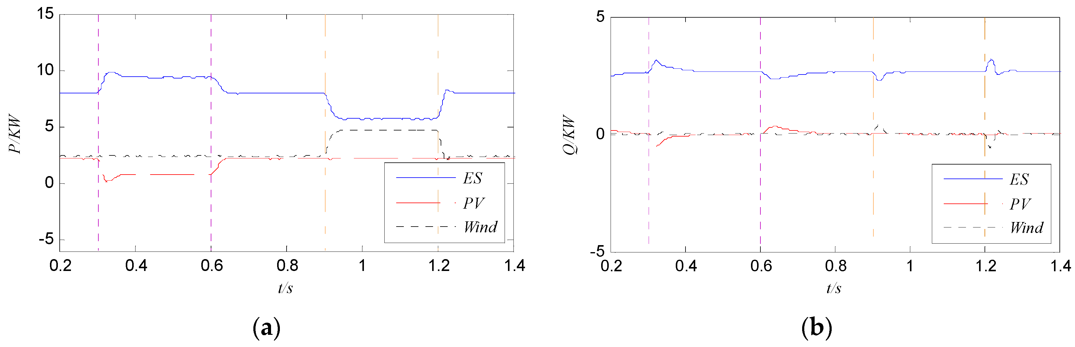 5.1. Light Intensity and Wind Speed Changing in Islanded Mode