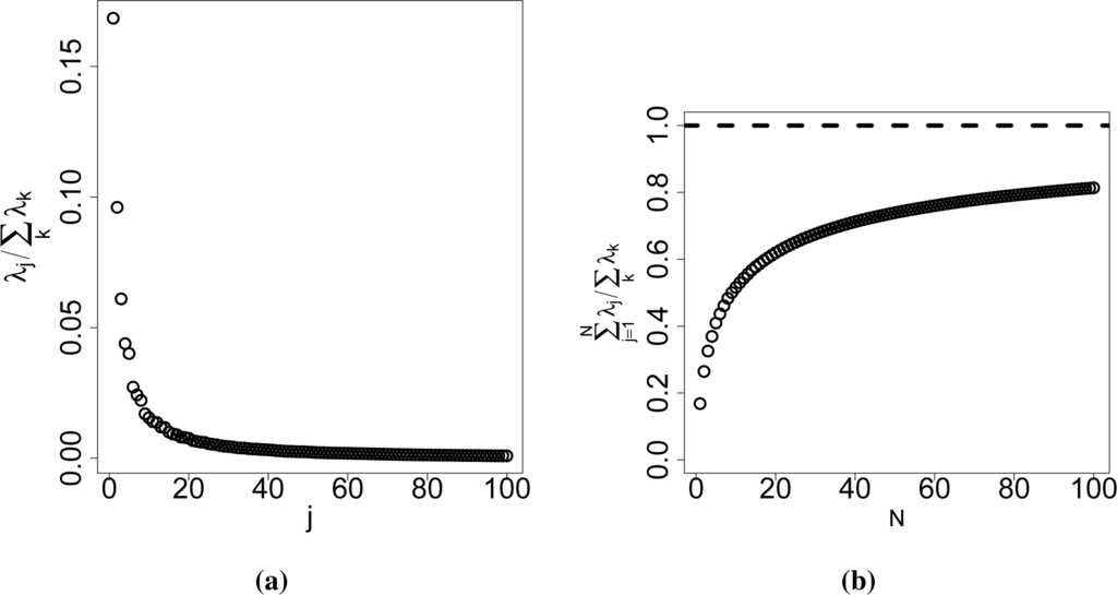 This equivalence is the main reason why the POD is a simple, but powerful tool. Instead of treating a complex optimization problem, we can now simply solve an eigenvalue problem of an Hermitian operator. In practice, Equation (5) is often approximated by the eigenvalue problem of the discretized covariance matrix , where uk is the value of u at the k-th grid point.
