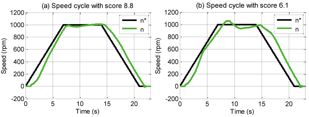 - First, the students take turns to drive the “virtual electric vehicle”. They must follow a certain urban driving cycle by controlling the drive speed via the accelerator and brake pedals. This urban cycle lasts for one minute and consists in a few accelerations and brakings. In order to increase motivation, each student is given a score that values their performance as drivers once the driving cycle is finished (see example in Figure 9).