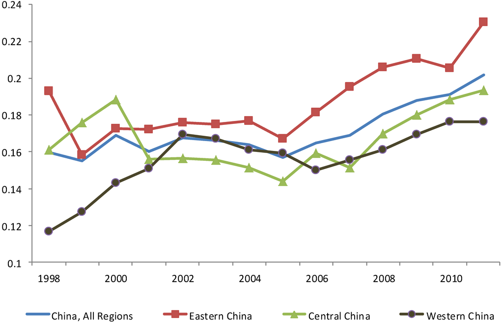 | Gansu | 0.32 | 0.30 | 0.31 | 0.33 | 0.34 | 0.35 | 0.35 | 0.36 | 0.36 | 0.37 | 0.37 | 0.38 | 0.39 | 0.44 |