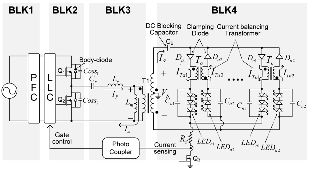 - A resistor of this block is used for LED current sensing and limiting. A regulated DC voltage is applied to an LED load through () and (). () and () are connected parallel to the LED load and the DC voltage is made smooth. The larger capacitance can further reduce AC noise.