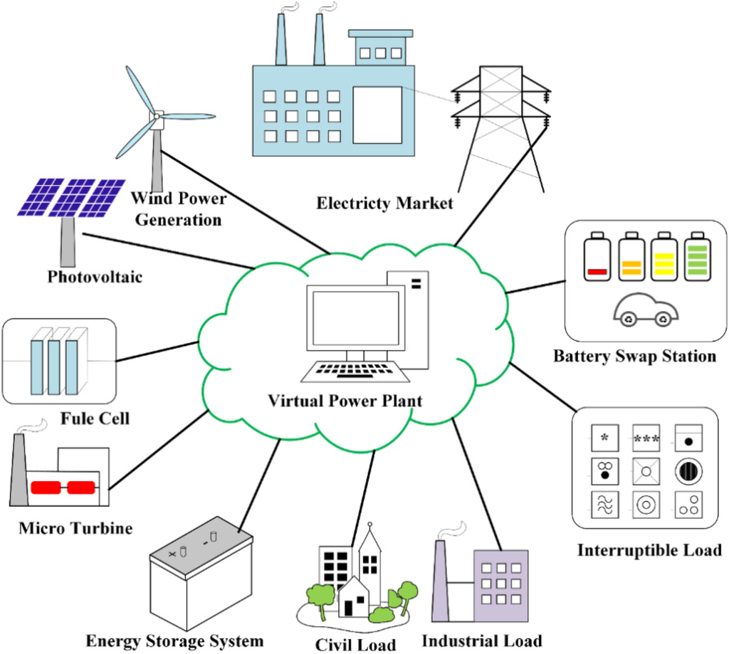 With the graveness of environmental pollution and energy shortage, distributed generation (DG) has been a widely researched topic in energy system studies. Although DG has many merits, there are still many problems in its application [1]. Microgrids can coordinate well technical contradictions between DG and the power grid, and also have some energy management functions. Power from DGs is used locally most of the time, so the application of DG is limited by its geographic area. It not possible to effectively use DG on a large-scale and in multiple areas and achieve the benefits of scale in the electricity market. The virtual power plant (VPP) provides new thinking and methods to solve these problems.