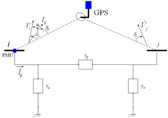 In power state estimation methods, the most commonly used measurements are line power flow, bus power injection and voltage magnitude measurements. In some cases, especially for state estimation of distribution buses, the line current magnitude measurements may be taken into consideration too. Where PMUs exist, there will be two new types of measurements utilized by power system state estimation methods. One is voltage phasor measurements which include voltage magnitudes and angles of the system bus, and the other is current phasor measurements which include current magnitudes and angles of the transmission lines or transformers [24]. All types of measurements can be expressed in terms of the system state using Equation (1):