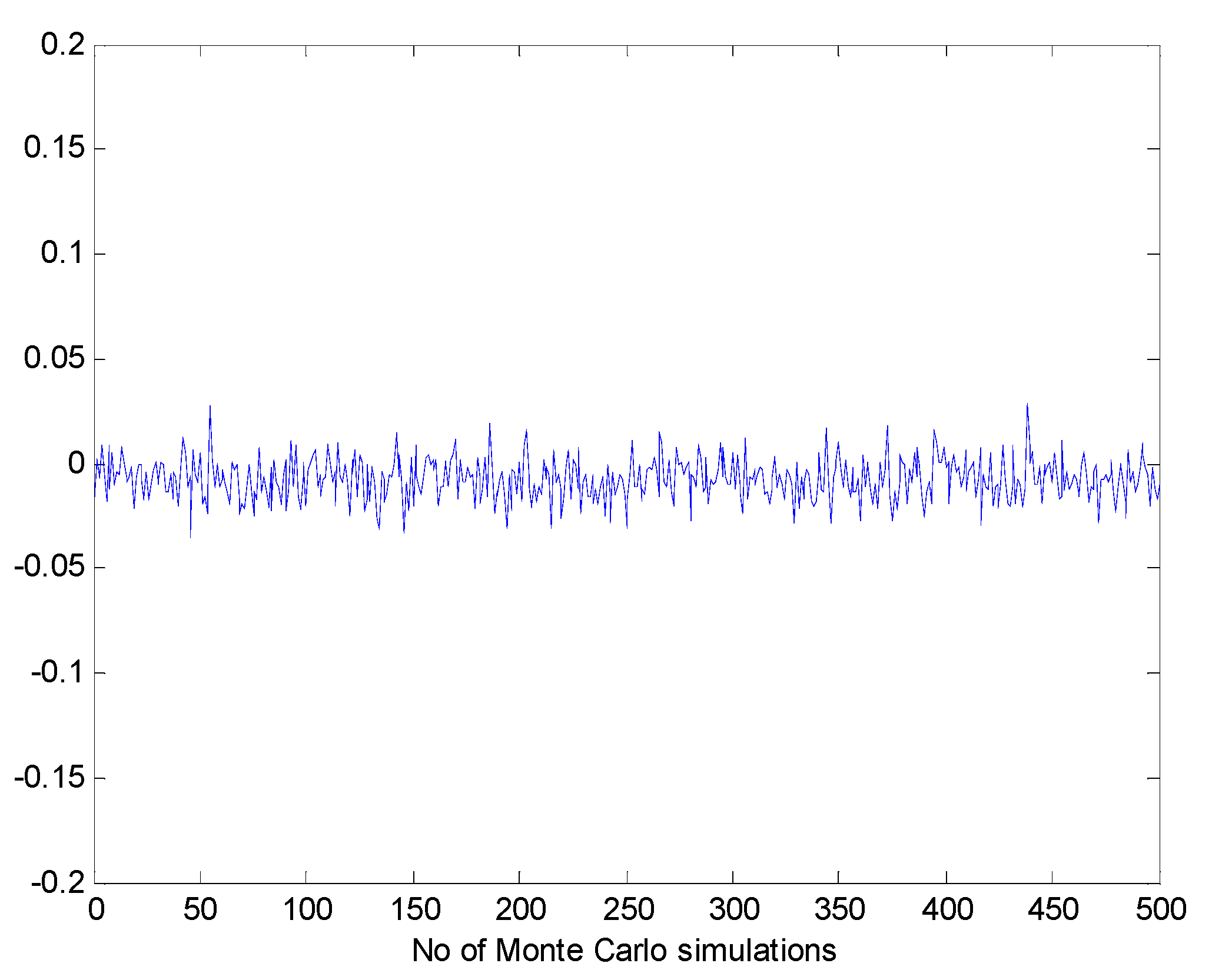 where is the distribution probability. In statistics, there are problems for which it may be good to use an estimator with a small , but nonzero, bias since the property of mean-unbiasedness may be lost under nonlinear transformations. In this paper, we used a Monte Carlo simulation to research the statistical characteristics, and the estimation step number is 500 steps. The measurement inputs are randomly produced by: