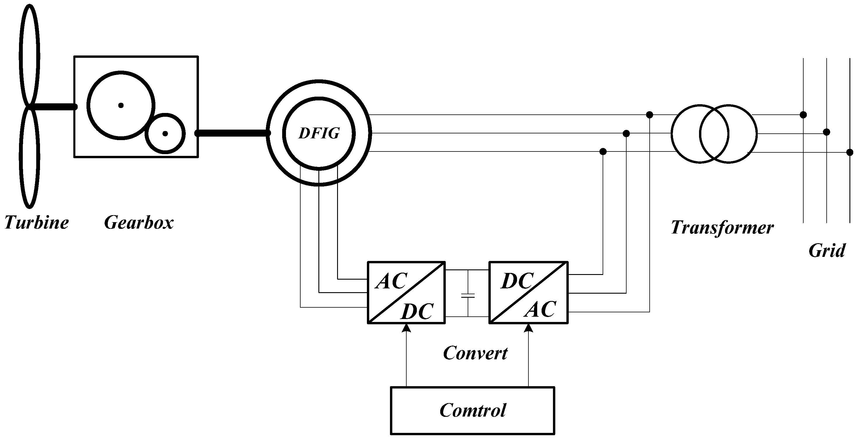 Configuration of a WT with DFIG.