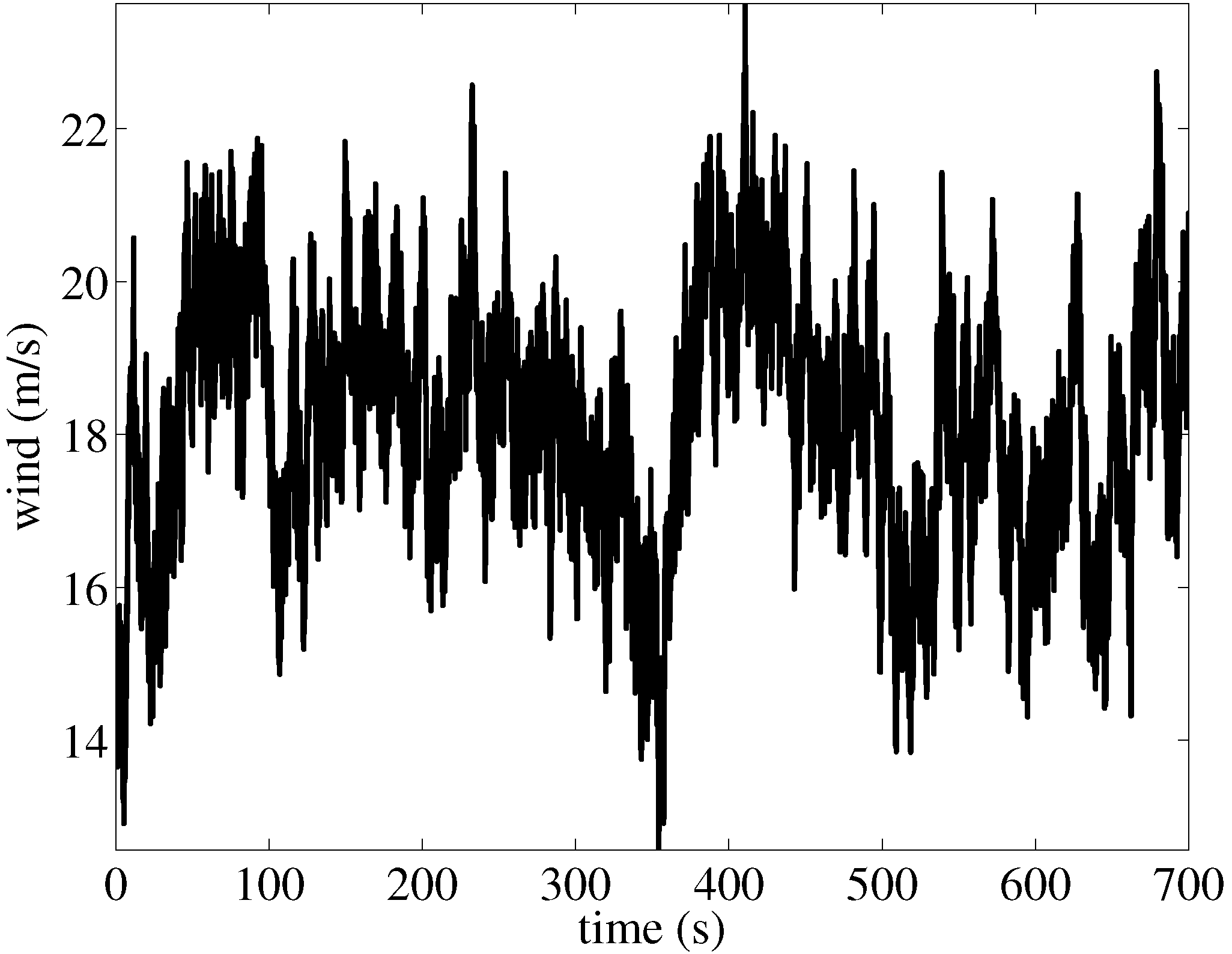 In fluid dynamics, turbulence is a flow regime characterized by chaotic property changes. This includes low momentum diffusion, high momentum convection and rapid variation of pressure and velocity in space and time. In the simulations, new wind datasets are generated in order to capture a more realistic turbulent wind simulation and, thus, to test the turbine controllers in a more realistic scenario. The turbulent-wind simulator TurbSim [31] developed by NRELis used. TurbSim generates a rectangular grid, which holds the wind data. The generated wind data have the following characteristics: