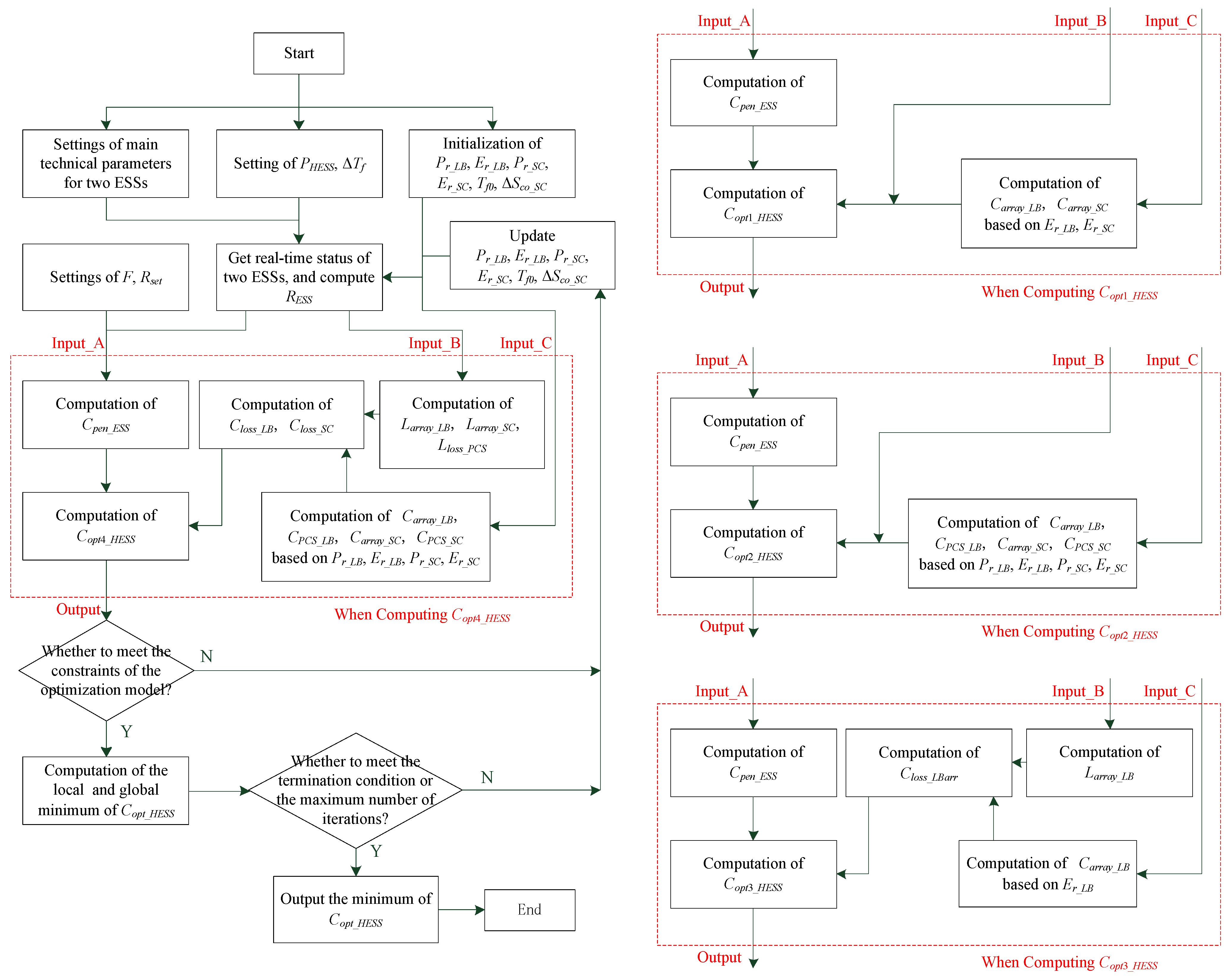 The optimization model of HESS used directly is shown by Equation (34). The parameters to be optimized are Pr_LB, Er_LB, Pr_SC, Er_SC, Tf0 and ΔSco_SC. The constraint conditions are shown in Equations (27)~(31):