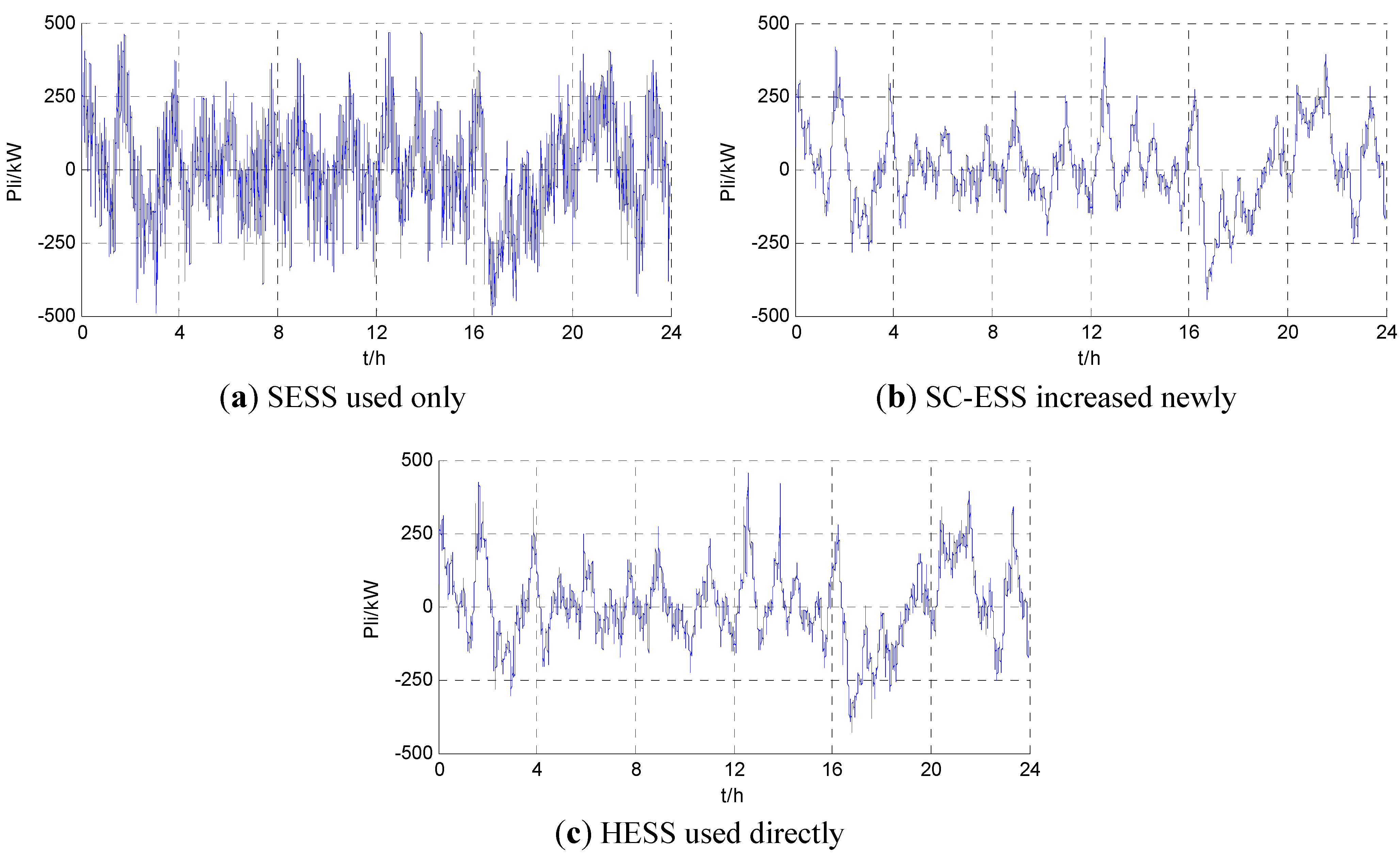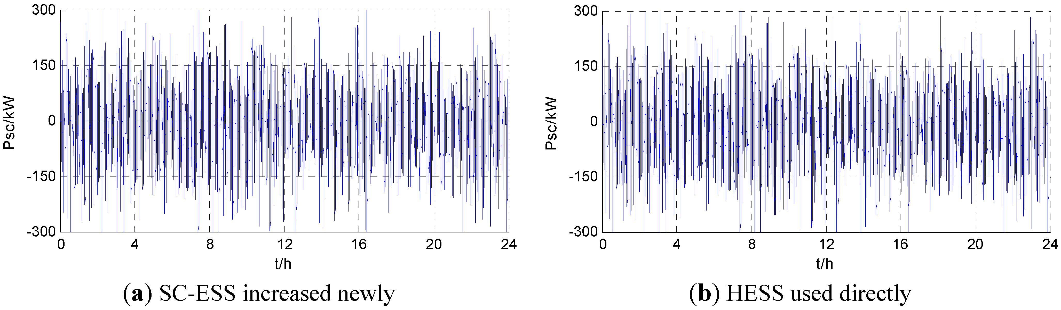 The net load curve of one day shown as Figure 5 is the second-level data of field measurements in a standalone microgrid project. The parameters are set as Rset = 99.9%, ΔTf = 1, F = 10,000$. The main parameters of LB-ESS and SC-ESS are provided in Table 1, where the matching PCSs typically have a lifetime of 10 years, and their initial investment costs are shown in Table 2. A single-stage PCS is used for LB-ESS, and a dual-stage PCS is used for SC-ESS.