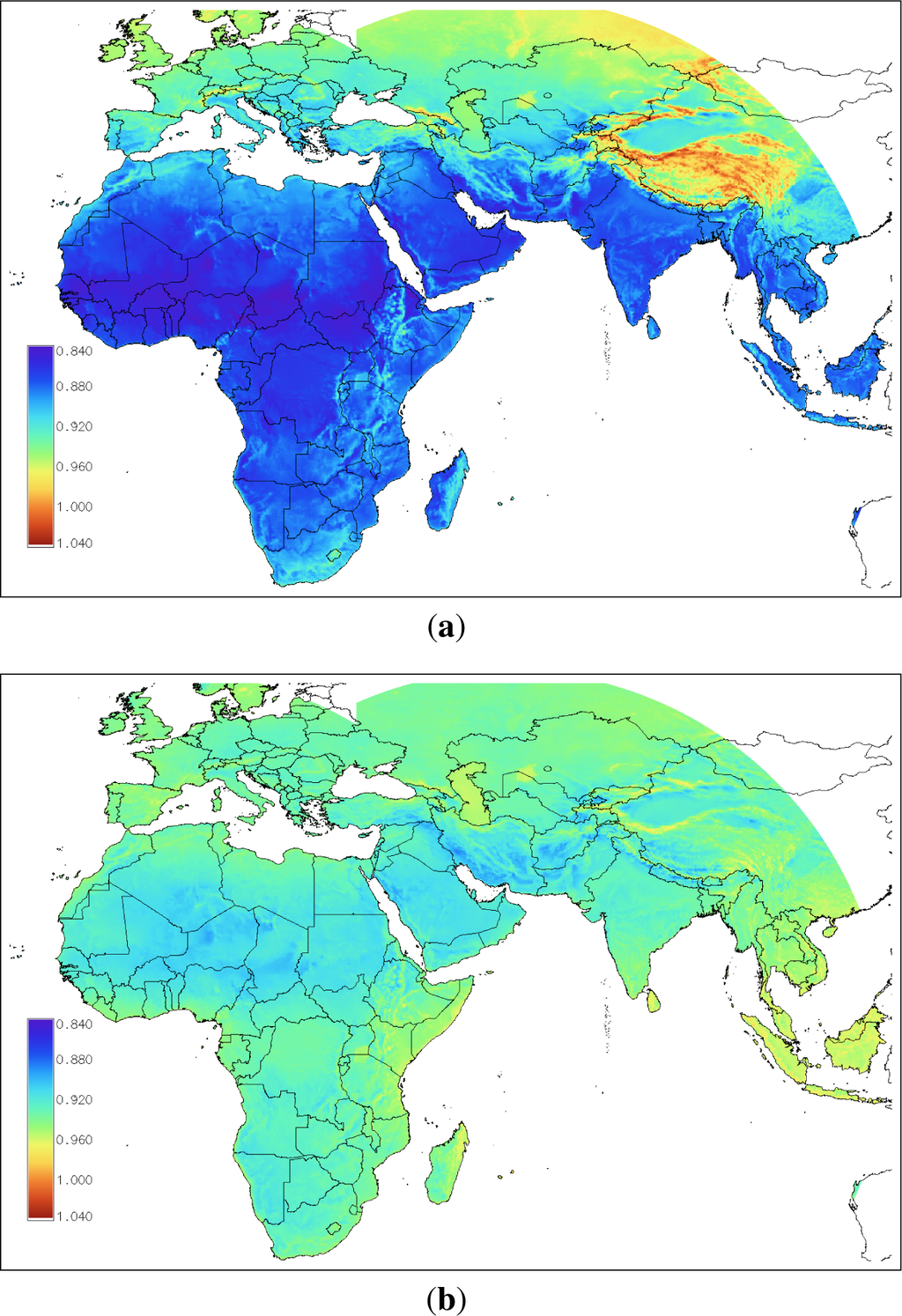 This section contains the results of the calculation methods described in the previous section in the form of graphs and maps. The data used to produce the figures can be downloaded from the web page containing supplementary data for this paper [].