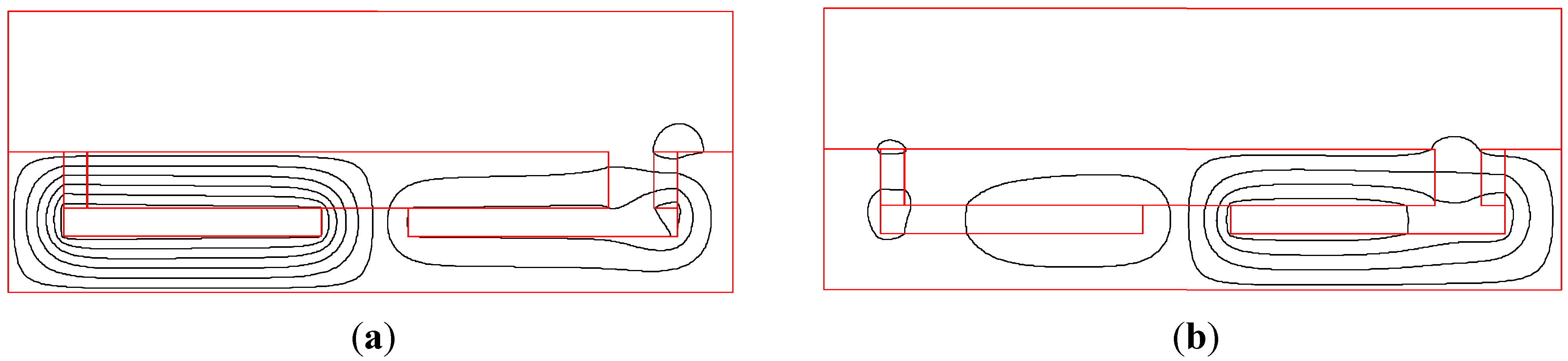 Magnetic flux lines distribution. (a) Steady state; (b) Action.