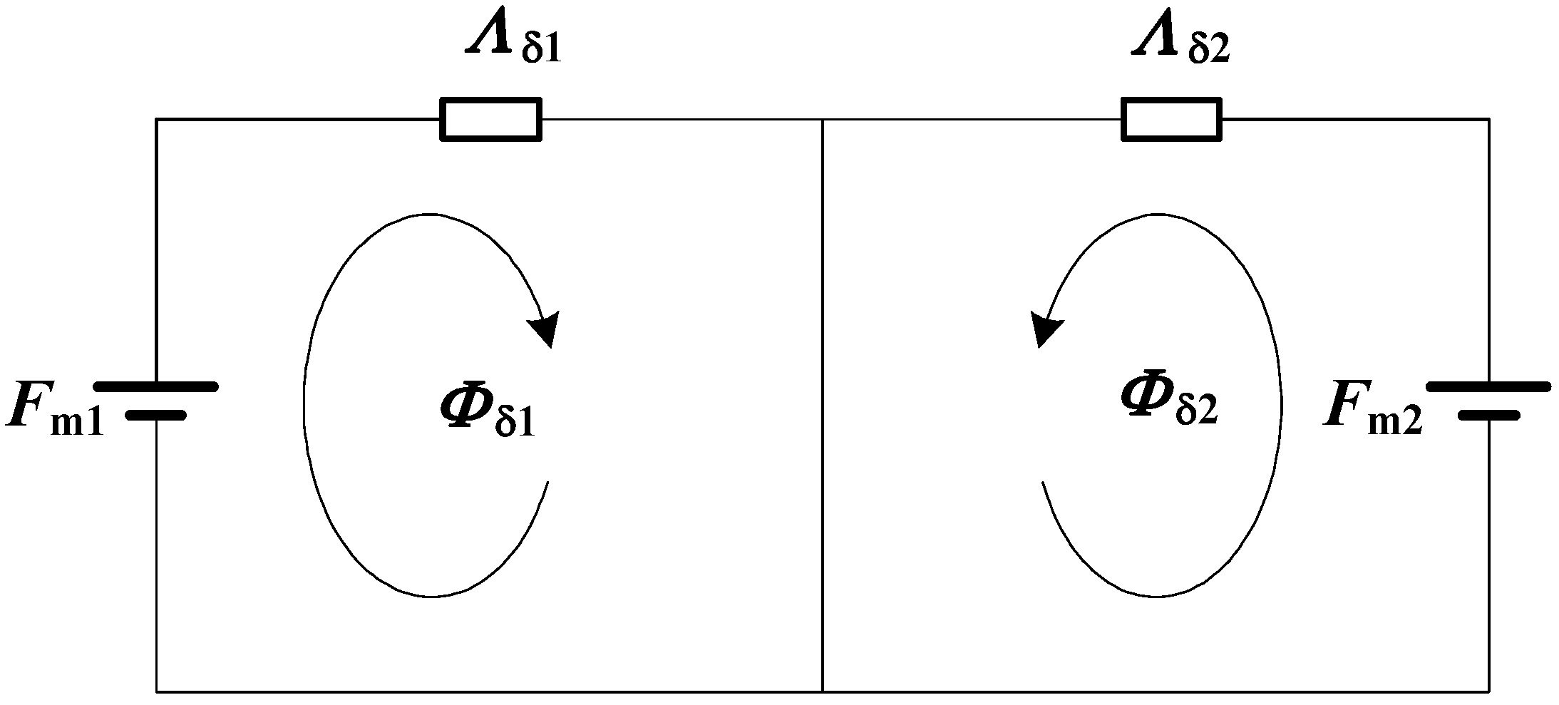 The magnetic network comprises two independent branches, where Fmj (j = 1, 2), Λδj, and Φδj are the magneto-motive force furnished to the air gap by the PM, air gap permeance, and magnetic flux pass through the pole face of the mover at each side, which are calculated by Equations (1)–(3), respectively: