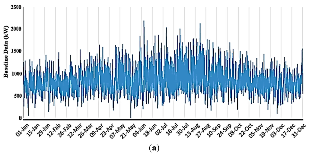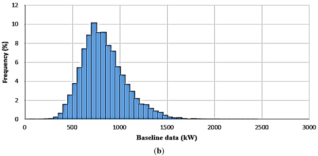 (a) The yearly baseline data load profile of the proposed tourist village in the study; (b) The baseline data load histogram of the proposed tourist village in the study.