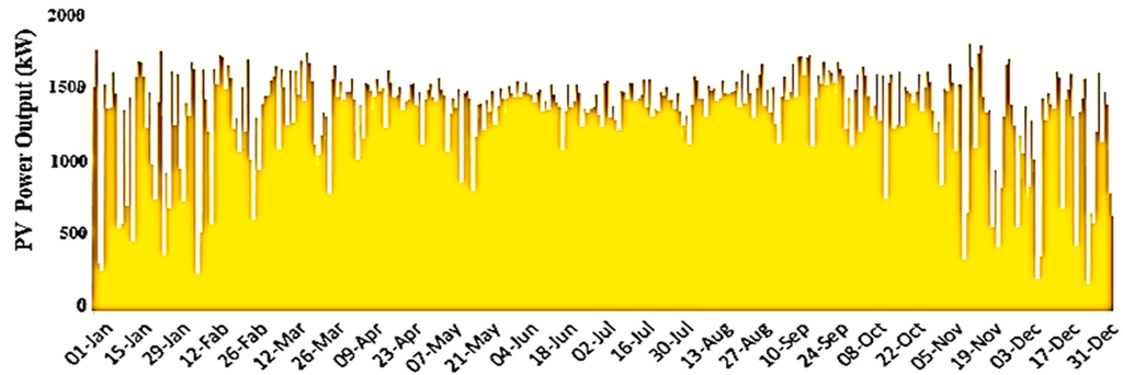 Figure 6. The yearly PV power output of the HRES for the proposed tourist village in the study.