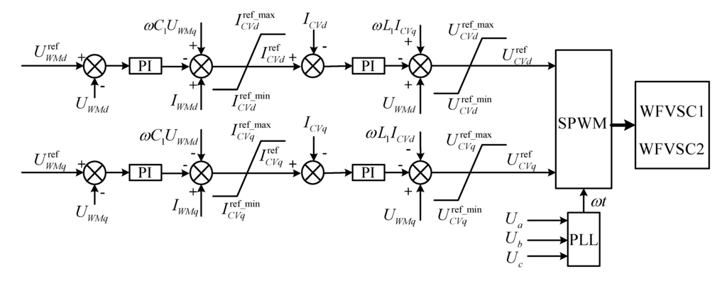 The equivalent circuit of wind farm connected to VSC station is shown in Figure 4. Ignoring resistance R and harmonic components of VSC, voltage and current of ac side are described as follows