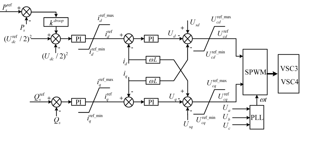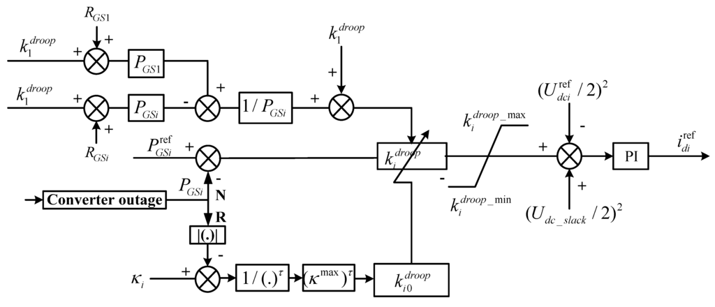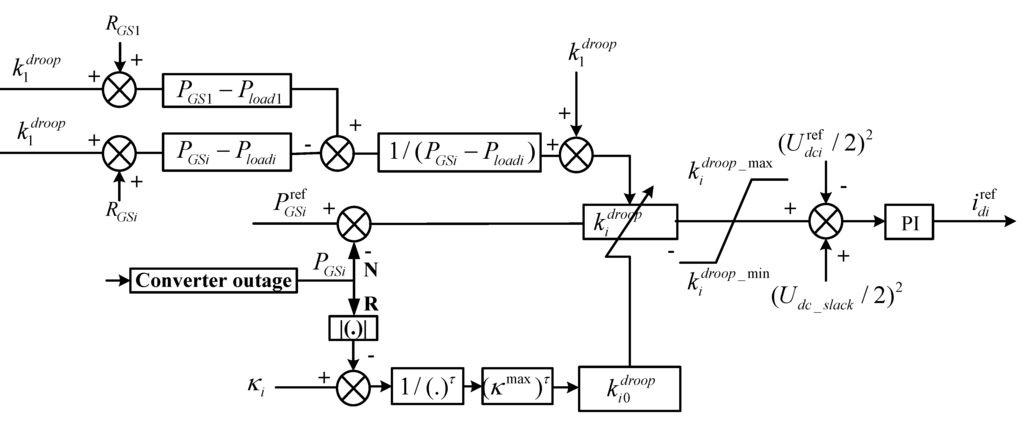 where, is minimum value of DC link voltage; is the maximum value of active power for converter i. Then the improved droop control of the ith converter is given by