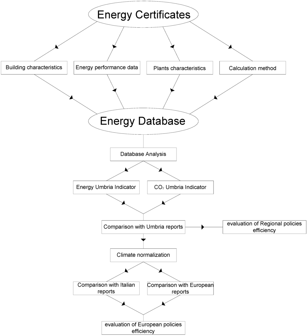 The novelty of this paper is due to the establishment of benchmarks of energy consumption and CO2 emissions in Umbria that can be compared to other energy and environmental performance indicators at different levels (national or international). In this way it is possible to evaluate the improvements obtained with the application of the regulations [,,].