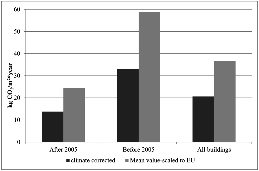 Therefore, the mean value of CO2 indicators was scaled to the EU climate conditions in agreement with the previous methodology used for the energy performance of the buildings.
