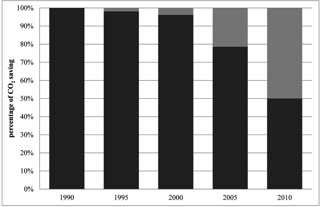 CO2 saving for households in the Umbria: trend in the years 1990–2010.