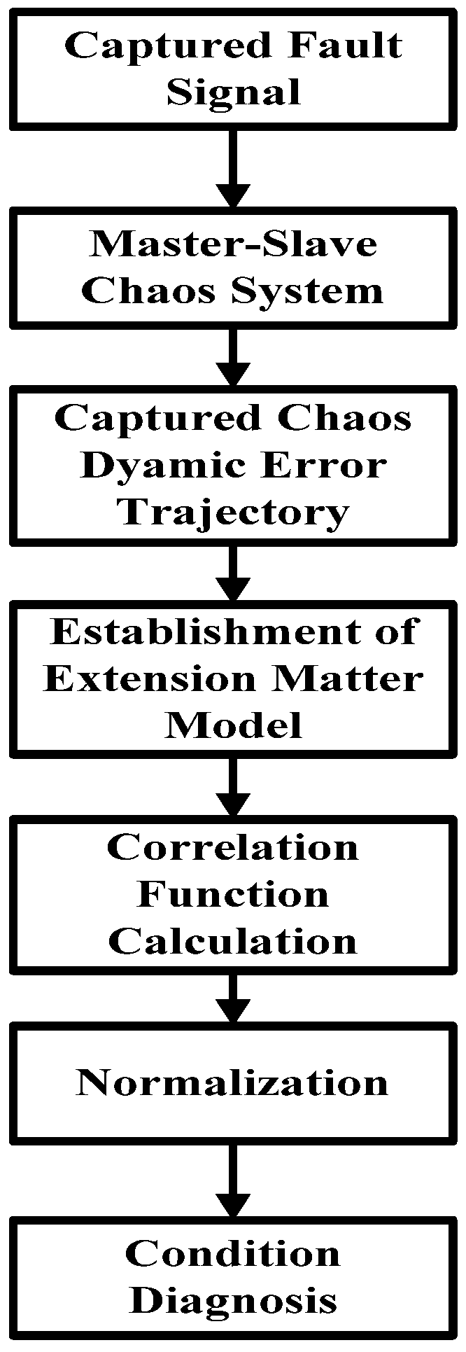 In this study use has been made of Extenics Engineering Diagnosis to develop the fault state diagnosis procedure shown in the flow chart in Figure 6. The fault voltage signal is captured by the controller and input to the master-slave chaos dynamic error system which tracks the error signal between them. The motion trail of the signal acts as an Extenics Engineering Diagnosis characteristic used to determine blade faults and establish an extension element model. A fast and accurate method has been developed using Extenics engineering to determine blade faults and make a quick and easy diagnosis to allow the problem to be corrected.